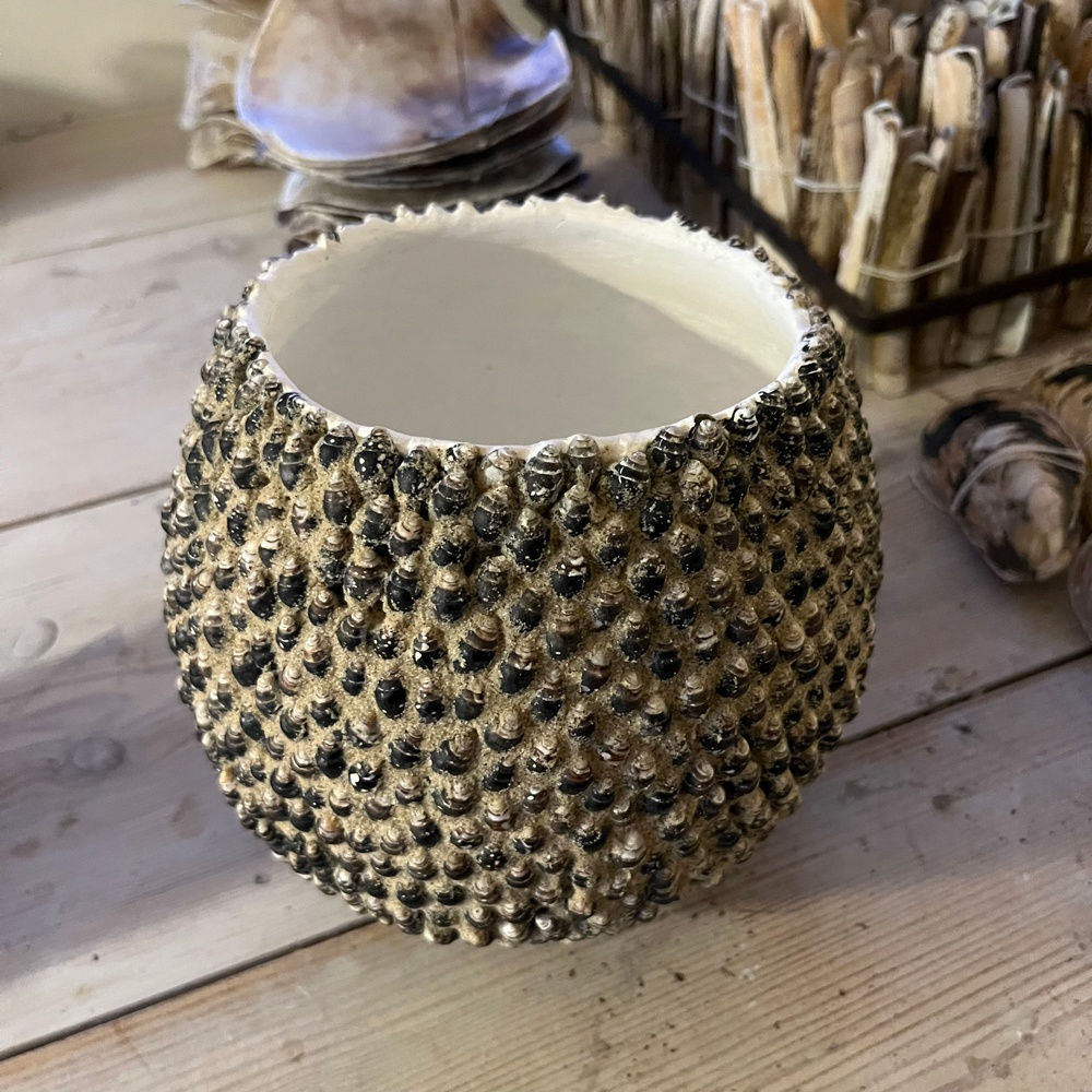 Using painstaking construction to carry the idea she juxtaposes a diverse range of contrasting materials, fragile with hard, structured with organic, natural with manmade. She aims to utilise the intrinsic qualities of the material and processes to evoke thoughtful, calming and surprising associations. Her chosen medium of shell has led to scrutiny of all that implies and recent works examining protection and susceptibility, enclosure and exposure could not be more poignant in the current environment.