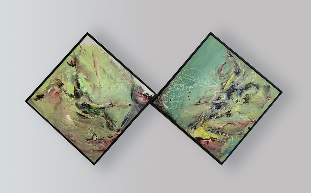The resulting paintings describe a sense of attack and defence between the birds she observes, intimating the basic fight-or-flight behaviour of even the most diminutive of birds. Beyond their avian references, these images are impressive for their counterpoising of formal elements. The gestural brilliance of Nessie's mark-making - her paint is scored and splattered with a palette knife, brush or by hand - is contained within a deliberate and considered rigour. Punctuated among these viseral moments are pinpoint intervals of calm.